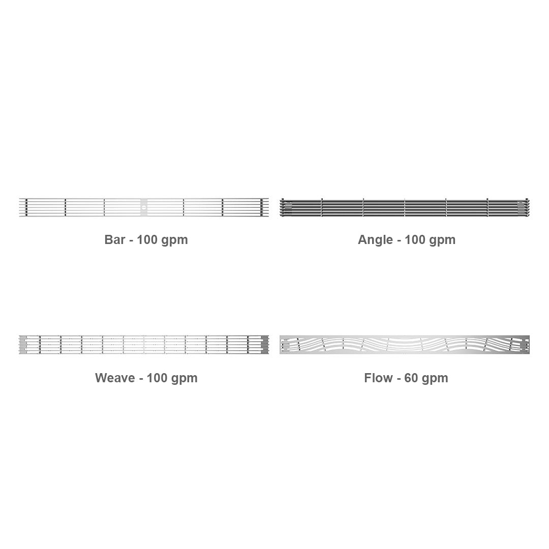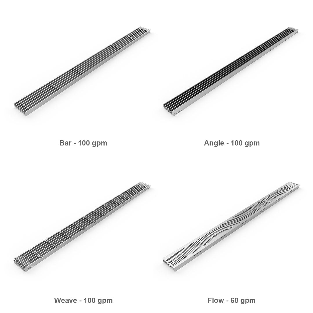 Angle: Pitching away from the everyday, the Angle grate presents a new aspect of a timeless classic. For those who like to add an understated flair in their design choices. The Angle is ADA compliant and rated at 100 GPM