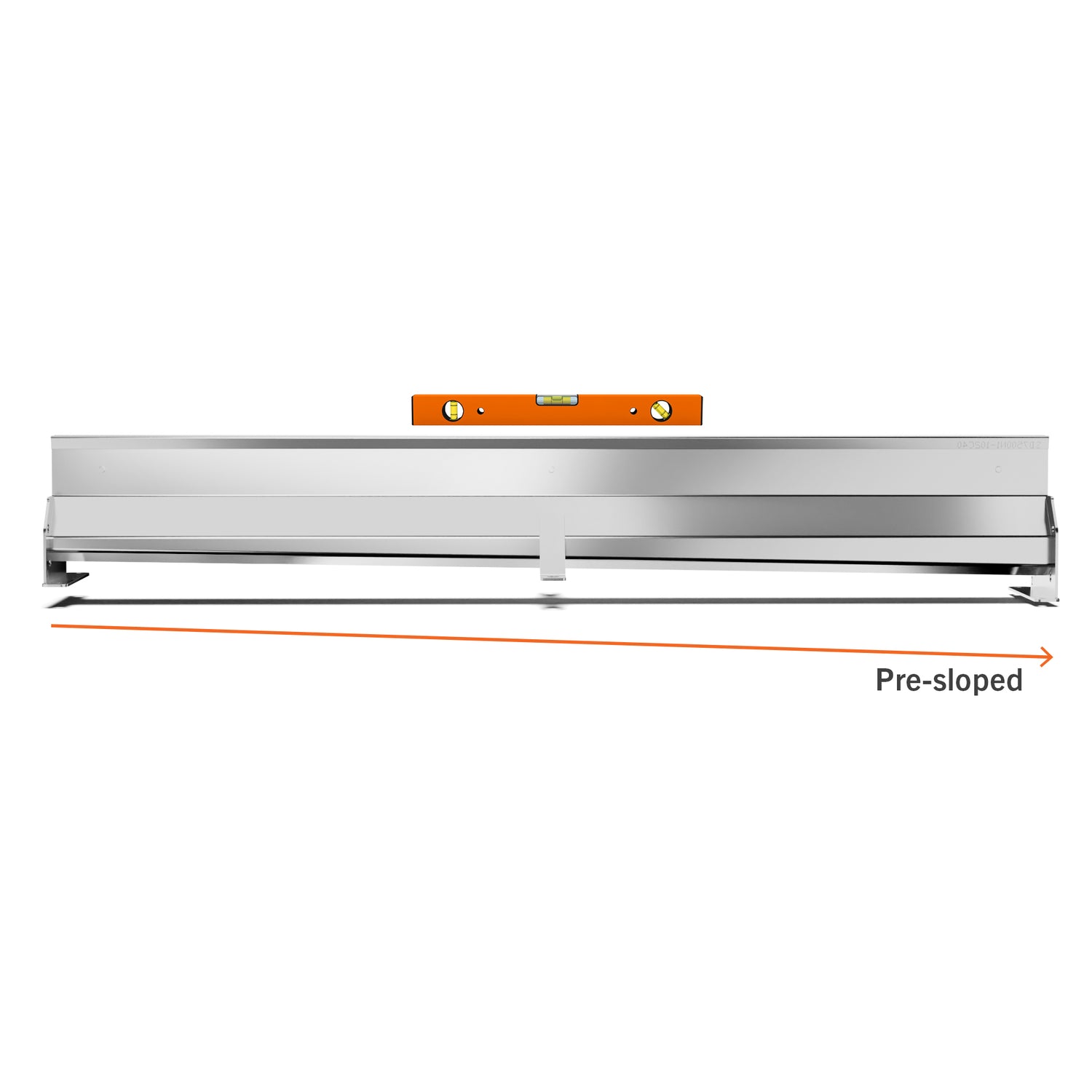 Our presloped drainage systems are manufactured with an integrated 0.5% slope. Presloped drain systems are made so that the top of the drain system is installed level while below grade the drain body gets progressively deeper to accommodate the slope. The included catch basin comes with an adapter plate to accommodate the specific depth of the drain at termination.